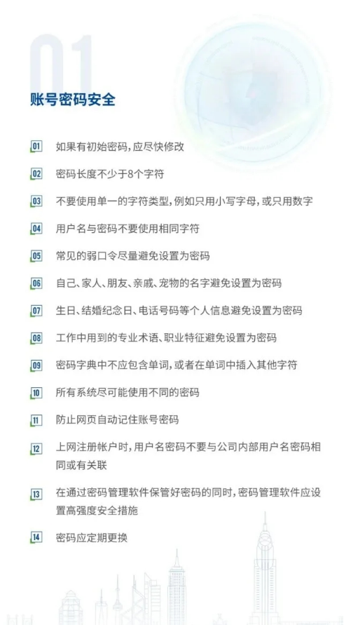2021年国家网络安全宣传周与10月11日至17日在全国范围内统一开展,主题为“网络安全为人民,网络安全靠人民”。 为进一步提升大家的安全意识,帮助大家建立更加安全的网络环境,现代教育技术中心为大家梳理了100个网络安全相关的知识点,涵盖了:账号密码安全、病毒风险防范、上网安全注意、网上交易安全、电子邮件安全、主机电脑安全、办公环境安全、移动手机安全、无线网络安全、敏感信息安全等十个方面。本期呈现给大家的是账号密码安全及病毒防范安全知识点。