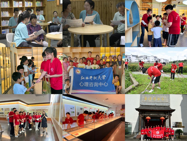 服务乡村和深入基层同步推进,增强问题意识为民办实事。志愿者们开展了丰富多彩的活动。直播助农,前往村民的菜地和王村的污水处理站进行义务锄草和清洁卫生实践;前往婺源红色教育基地,了解当地的红色文化和历史传承,接受红色文化教育洗礼。