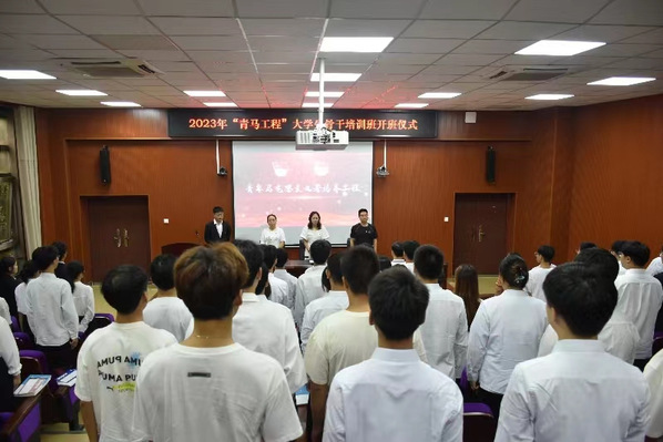 “青”春集结,以梦为“马”。9月12日,学校在西湖校区教学楼207组织举行2023年“青年马克思主义者培养工程”培训班开班仪式,深入学习贯彻习近平新时代中国特色社会主义思想和党的二十大精神,进一步增强学校学生骨干的思想政治理论水平,提升学生骨干综合素质和创新实践等能力,充分发挥学生骨干的示范引领作用,培养更多优秀的新时代青年马克思主义者。校团委副书记、团委工作人员、各专业学院团学科负责人、各团总支书记及“青马工程”大学生骨干培训班全体学员参加本次开班仪式。