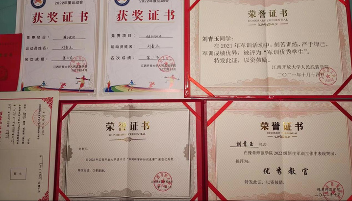大学是每个人一生中最宝贵的经历和不可磨灭的时光,在此,我们可以尽情挥洒汗水、展现自我、感受青春。刘青玉清楚地记得第一次见到大学校园时的激动和兴奋,第一次在军训期间向教官请教问题的耐心和执着,第一次在开学典礼上唱国歌的热血与激情……她说:“人生道路上每一个阶段都是不同的,我所经历的每一段路都是不可复制的。实现自己的梦想,大学生涯中不断成长、不断进步是作为一名当代大学生应有的追求。”