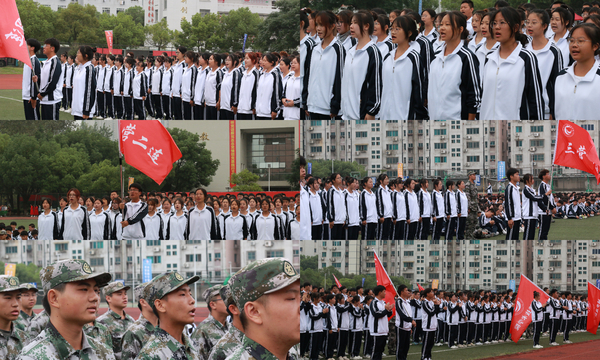 在雄壮嘹亮的国歌声中,国旗护卫队身姿挺拔、步伐整齐,随着五星红旗冉冉升起,开学典礼暨军训总结大会拉开了序幕。