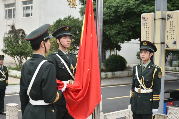 雄壮嘹亮的国歌声国旗护卫队身姿挺拔、步伐整齐,随着五星红旗冉冉升起,开学典礼暨军训总结大会拉开序幕。