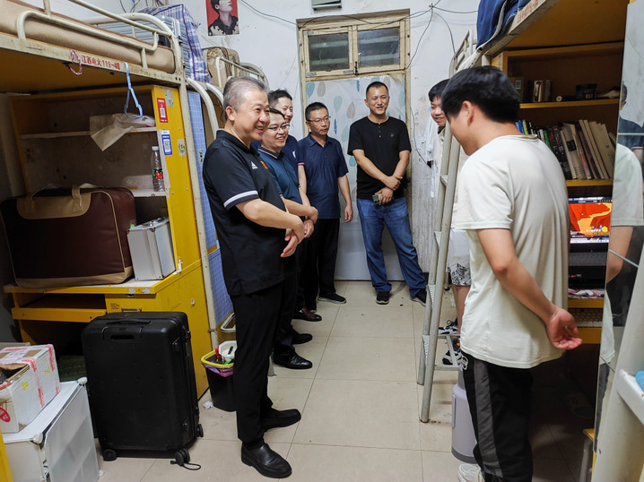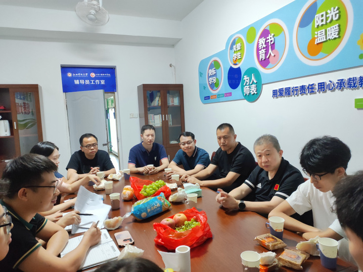 在辅导员值班工作室,徐光兵对学校值班中层干部和值班辅导员的工作表示肯定,并对学生管理工作和辅导员队伍建设提出了具体要求:一是要为辅导员队伍能力提升建立健全科学合理的长效机制,提高辅导员工作的主动性和积极性;二是要落实辅导员晚查寝制度,发挥各级党团组织作用,充分调动学生自我管理的积极性;三是要加强学生管理信息化建设,充分认识信息化在思想育人、实践育人、心理育人、文化育人中的重要作用。