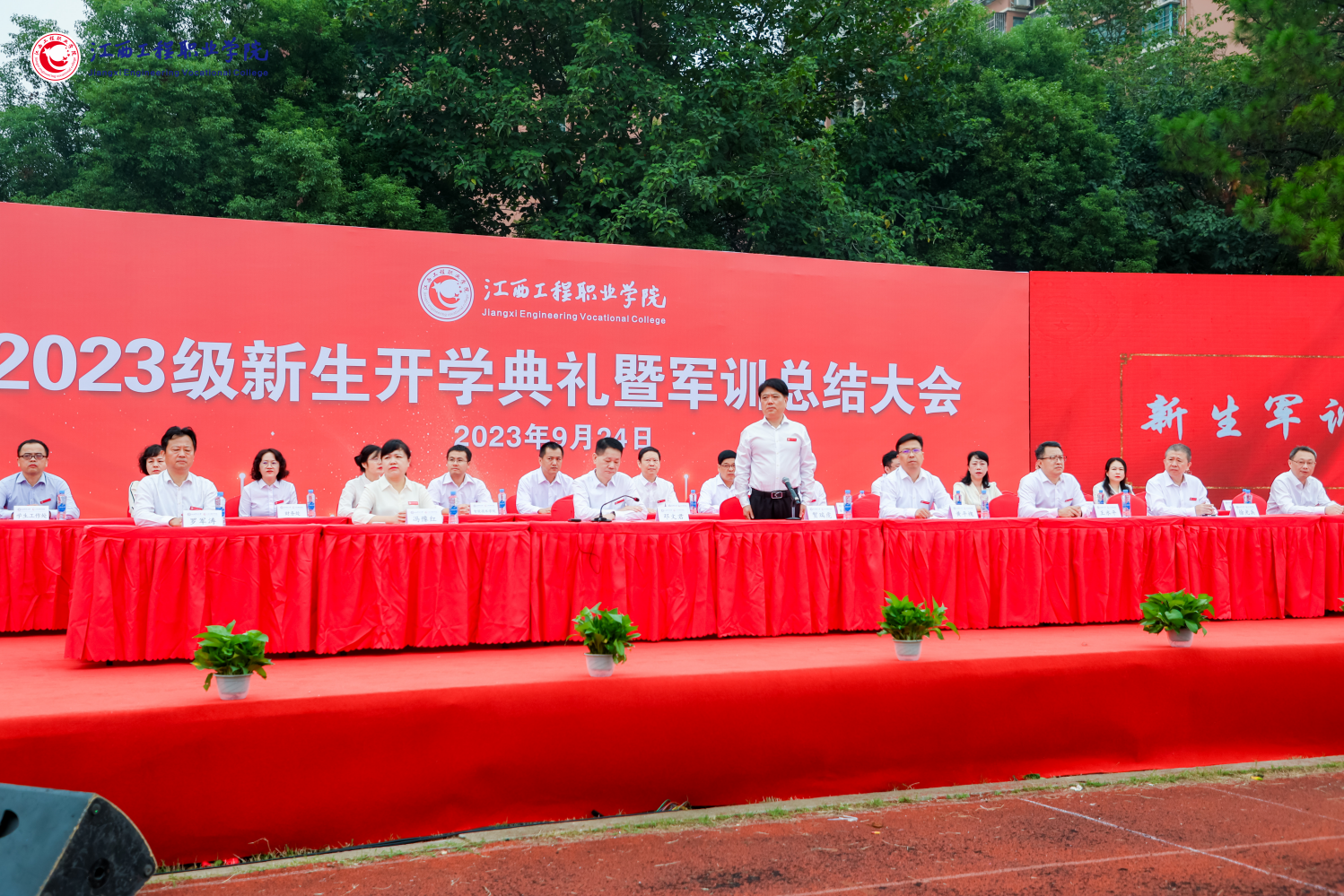 金秋九月,江西工程职业学院迎来了1908名2023级新同学。9月24日上午9时,学校2023级新生开学典礼暨军训总结大会在437必赢会员中心(江西工程职业学院)西湖校区运动场隆重举行。校党委书记贺瑞虎,校党委副书记、校长黄平槐等校领导,各专业学院党政负责人,学校相关部门的负责人和新生辅导员到场观礼。