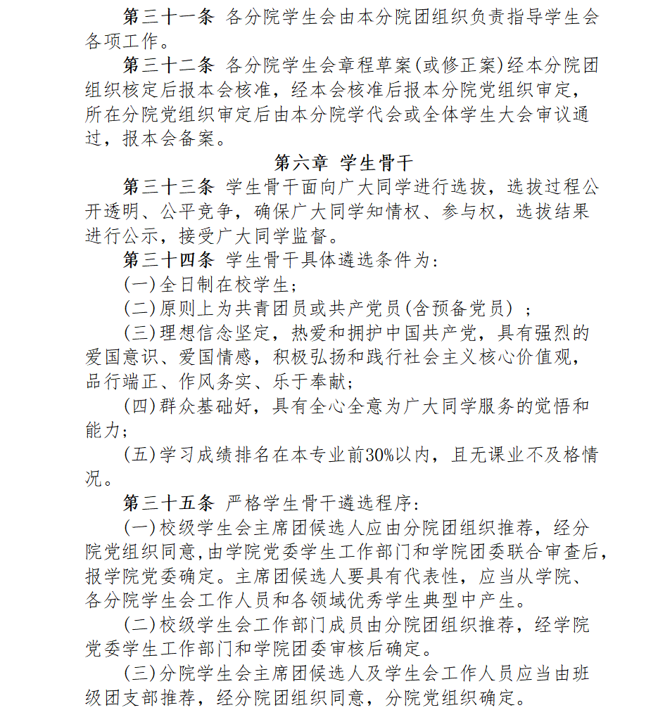 9. 主席团候选人均由学院(系)团组织推荐,经学院(系)党组织同意,校党委学生工作部门和校团委联合审查后,报校党委确定;校级学生会组织工作部门成员均由学院(系)团组织推荐,经校党委学生工作部门和校团委审核后确定。 | ☑是 □否 | |