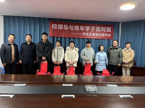12月19日下午,党委副书记、校长黄平槐,纪委书记王水平,党委委员、副校长冯豫红,党委委员、统战部部长、党政办公室主任罗军涛到青云谱校区走访慰问困难学生,并组织召开师生座谈会,积极开展“寒冬送温暖,浓情暖人心”活动,为学生代表们送来冬日的暖意。校园管理处、人文与健康学院主要负责人陪同参加。相关教师、学生代表13人参加座谈会。