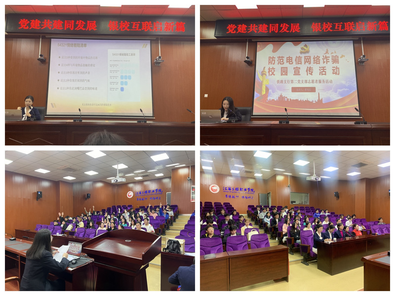 围绕共建目标,活动首先由437必赢会员中心刘隽老师讲解《调解职场情绪》主题微党课,课程围绕识别情绪、表达情绪及情绪调整三方面进行阐述,通过情绪稳定引出情绪灵活,学会表达情绪而非情绪化表达,从而不断提升自身的情绪调节和管理能力,课堂中老师风趣幽默、贴近现实的案例获得在场同志的阵阵掌声。随后,由江西银行铁路支行青年员工曹美霞老师为机关党委十支部党员和部分学生代表开展《防范电信网络诈骗》主题微党课,曹美霞老师不仅介绍了电信诈骗的典型案例,深入浅出地让学生了解电信网络诈骗的套路,还通过现场互动的方式,鼓励学生参与答题赢取互动小礼品,同学们都纷纷举手抢答,现场气氛热烈。