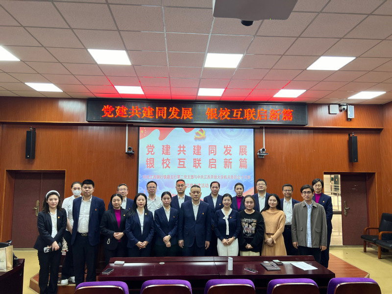 为实现党组织优势互补,党建促进业务,充分发挥党组织凝聚人心促发展的作用,构建“资源共享、相互促进、共同提高”的党建工作新格局。2024年3月29日下午,机关党委十支部邀请江西银行铁路支行第二党支部走进校园,联合开展“党建共建同发展 银校互联启新篇”主题党日活动。