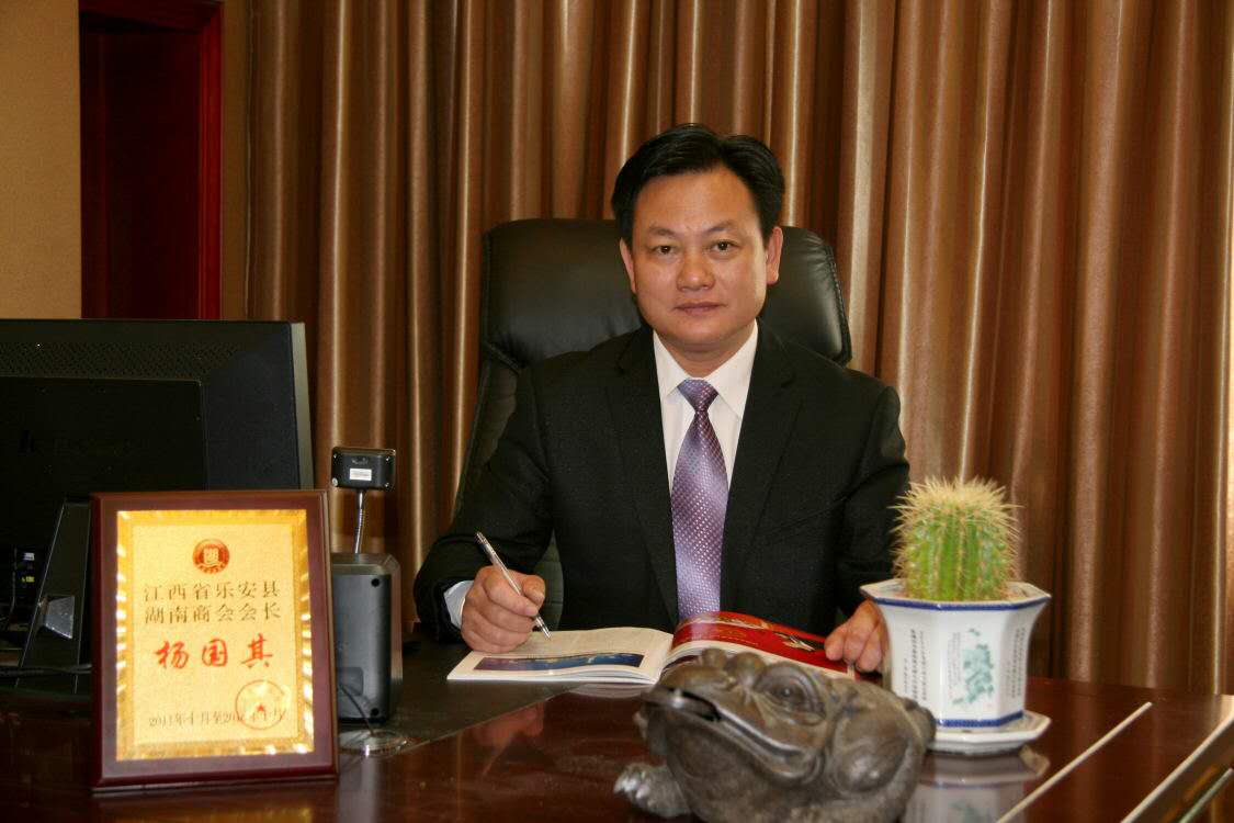 乐安县拥有近4万湖南籍移民,这些身在他乡的移民,有时经常会遇到诸多困难,也经常会发生各种矛盾纠纷,而且还经常会大量聚集上访,有时还容易发生群体性事件,影响当地社会的和谐稳定,让当地政府和有关部门都深感棘手。为关心帮助这些移民,同时,也架起政府与湖南移民沟通的“桥梁”,2011年,在当地政府和江西省湖南商会及湖南方面的大力支持下,杨国其积极倡导成立了“乐安县湖南商会”,并担任了湖南商会会长。商会自成立以来,在杨国其的领导带领下,捐资助学、扶贫济困、调解矛盾纠纷、为政府排忧解难、搭建创业交流平台等各项活动开展得有声有色。商会成立几年间,迅猛发展,麾下产业主要包括房地产、建筑、家具、餐饮、娱乐、食品、服装、种植等10多个行业,经济实力较雄厚,每年商会会员上交税收2000多万元,安置了城乡就业人员7000多人。几年来,商会调解的各类纠纷多达100多件。商会不仅有力地维护了湖南移民的合法正当权益,也促进了当地经济发展和社会的和谐稳定,受到了湖南移民、当地政府和社会各界的好评。