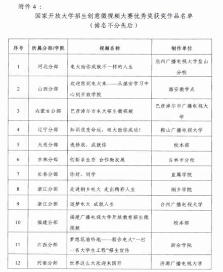 为庆祝国家开放大学成立40周年,国家开放大学组织了招生创意微视频大赛,本次大赛共征集到33个省级电大、2个专门学院和3个行业学院的作品105,新余电大制作的《梦想花开渝钤地--新余电大“一村一名大学生工程”招生宣传》荣获优秀奖。本次大赛通过初审,并在国家开放大学官网的40周年校庆主页及国开学习网首页进行展示投票,经过网上投票和专家组线上及会议评审得出结果。新余电大作为国家开放大学江西分部唯一代表选送了《梦想花开渝钤地--新余电大“一村一名大学生工程”招生宣传》和《电大,您的终身学习课堂》两件作品参赛,其中《梦想花开渝钤地--新余电大“一村一名大学生工程”招生宣传》荣获优秀奖,江西唯一。