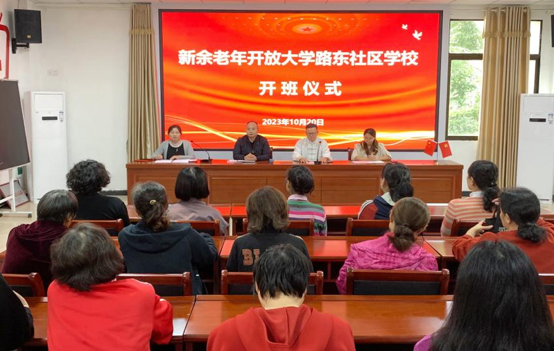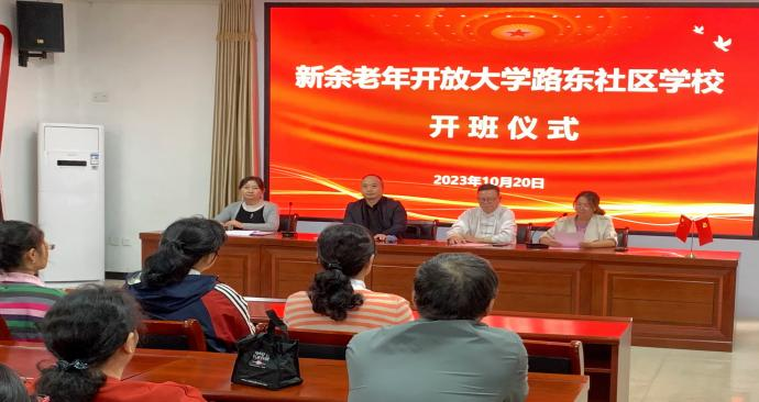 岁岁重阳,今又重阳,为弘扬尊老、敬老、爱老、助老的优良传统美德,新余老年开放大学践行积极老龄观,推进老年开放大学建设向基层延伸,2023年秋季学期新余开放大学在新苑社区、路东社区挂牌成立新余老年开放大学新苑社区、路东社区学校,把老年大学办到群众家门口,不断提高老年人幸福指数和生活质量。10月20日,路东社区学校举行开班仪式。